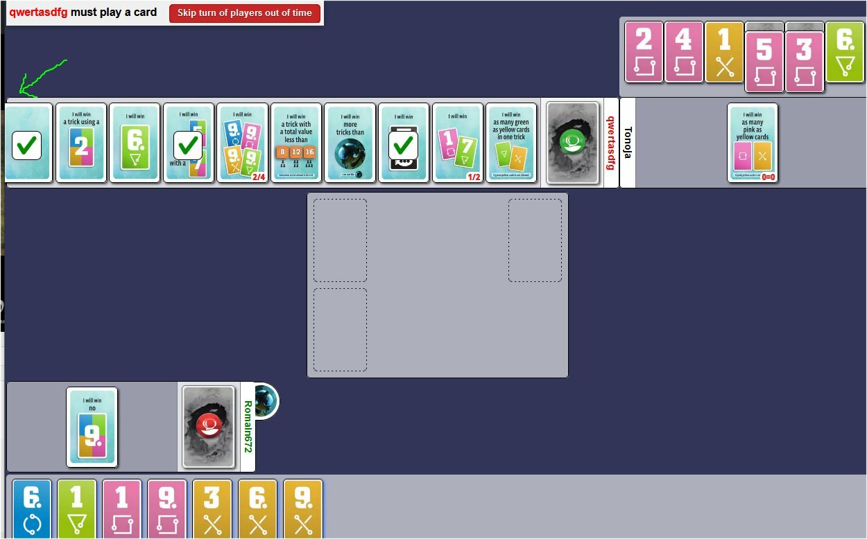 as you can see, I can only see a little part of the last trick of the other players. This is a screenshot from mobile. Also in Landscape mode, it looks the same. Scrolling ist not possible anywhere.